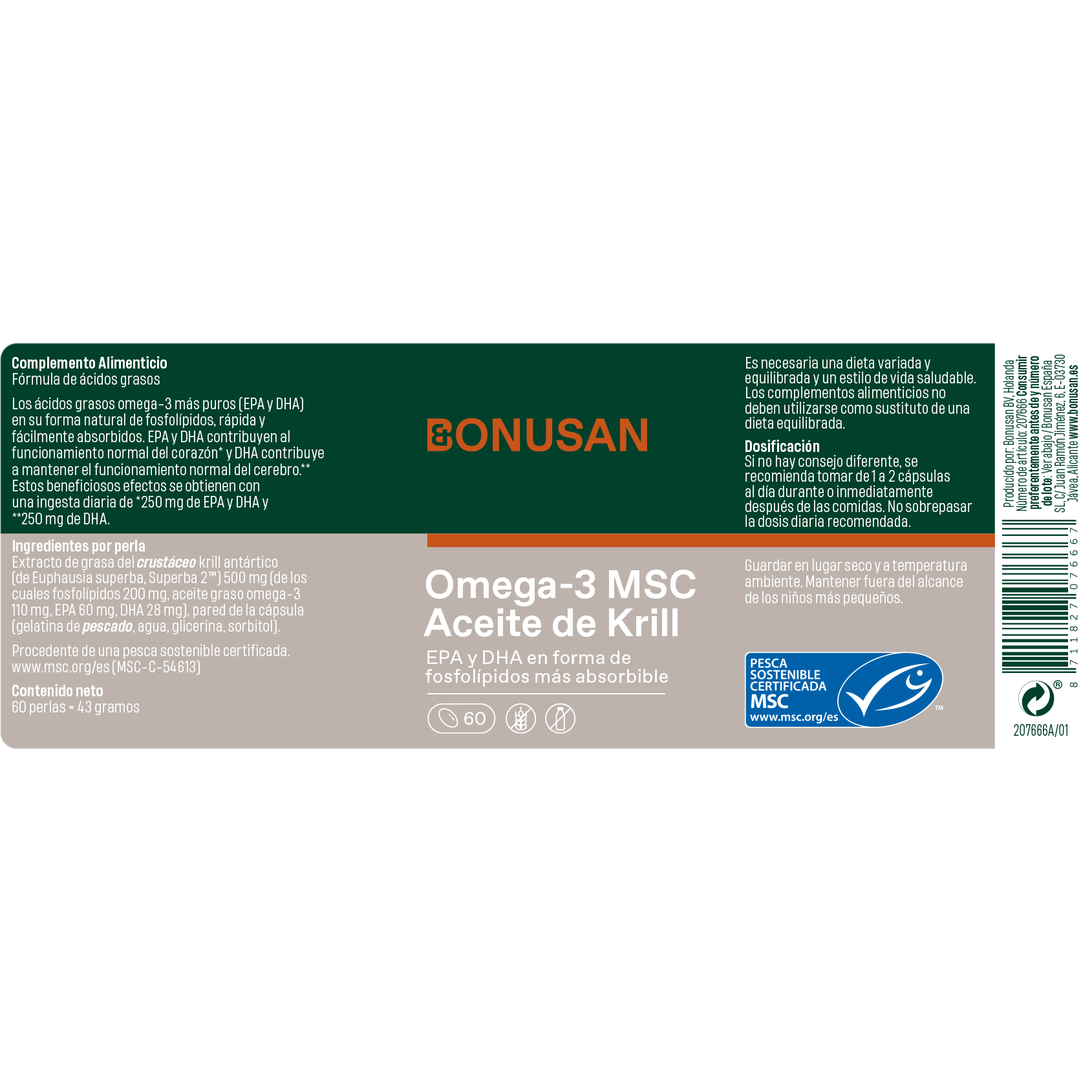 - Hecho al 100 % con aceite de krill con certificación MSC